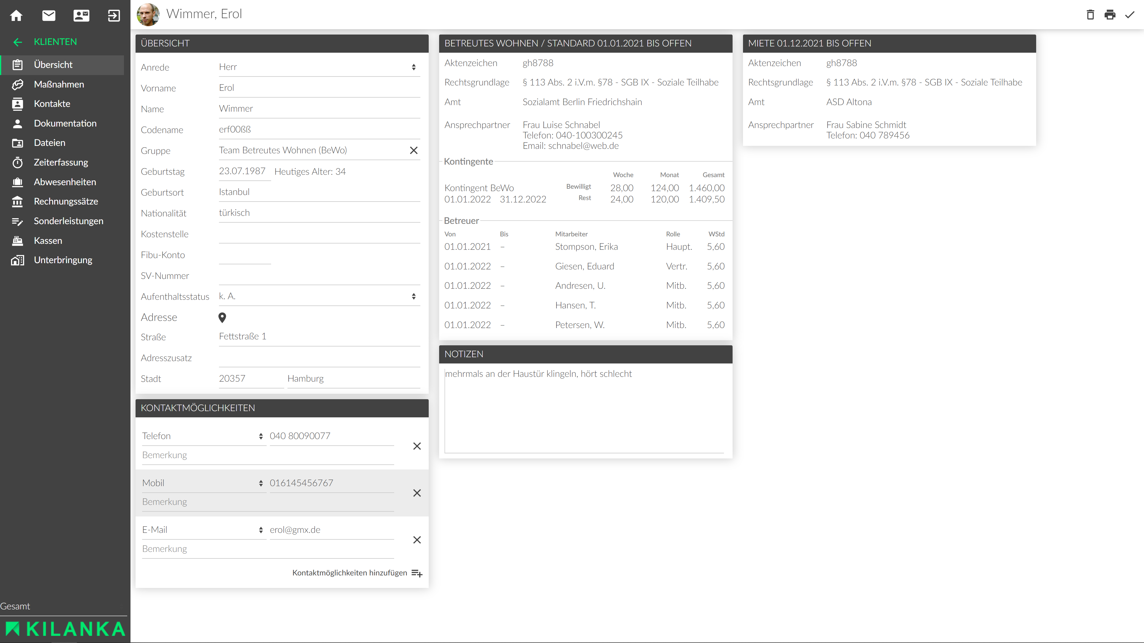 - Einfacher Zugriff auf Klientendaten sowie deren Kontakte