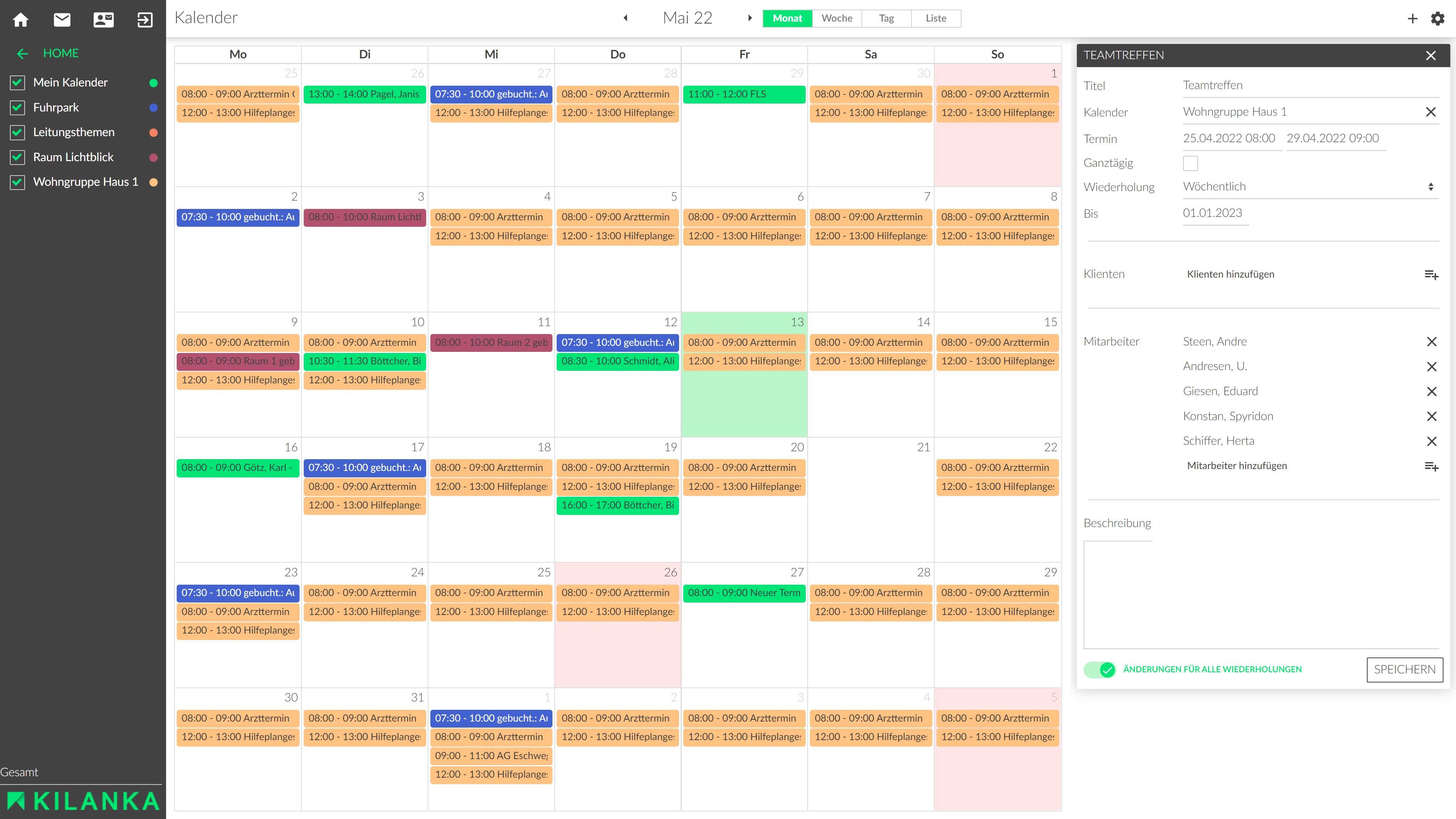 - Zentraler Kalender mit allen relevanten Terminen von Einrichtung, Klienten und Mitarbeitern