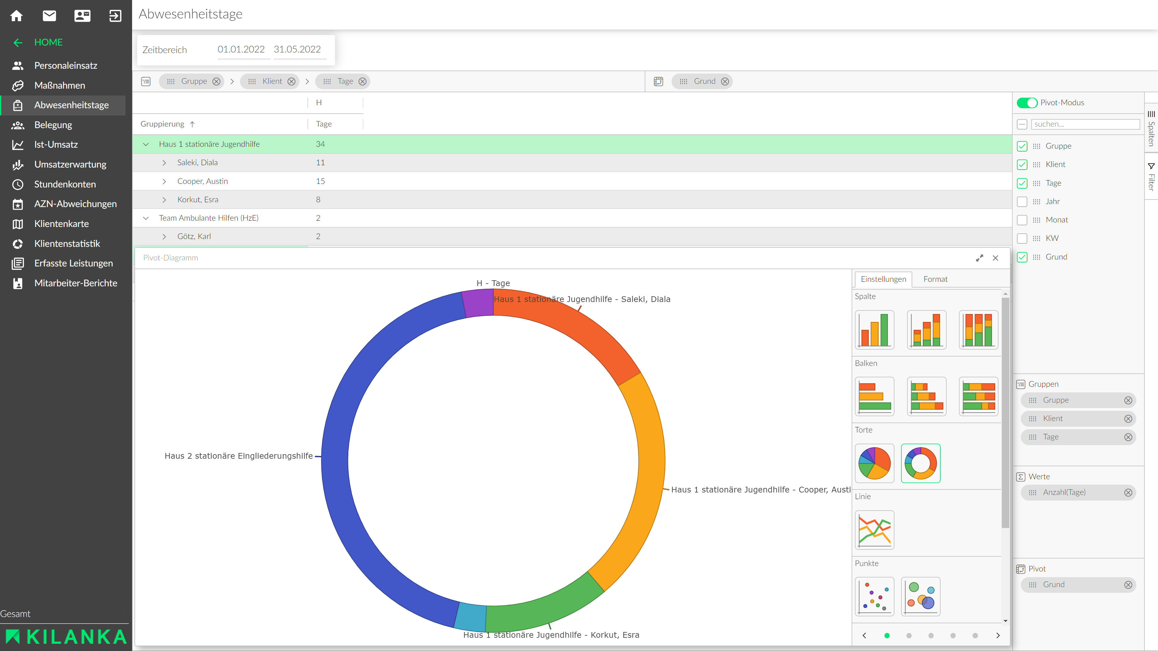 - Erfassung und Auswertung von Hilfeplangesprächen (HPGs), Tages- und Wochenberichten und vielem mehr
