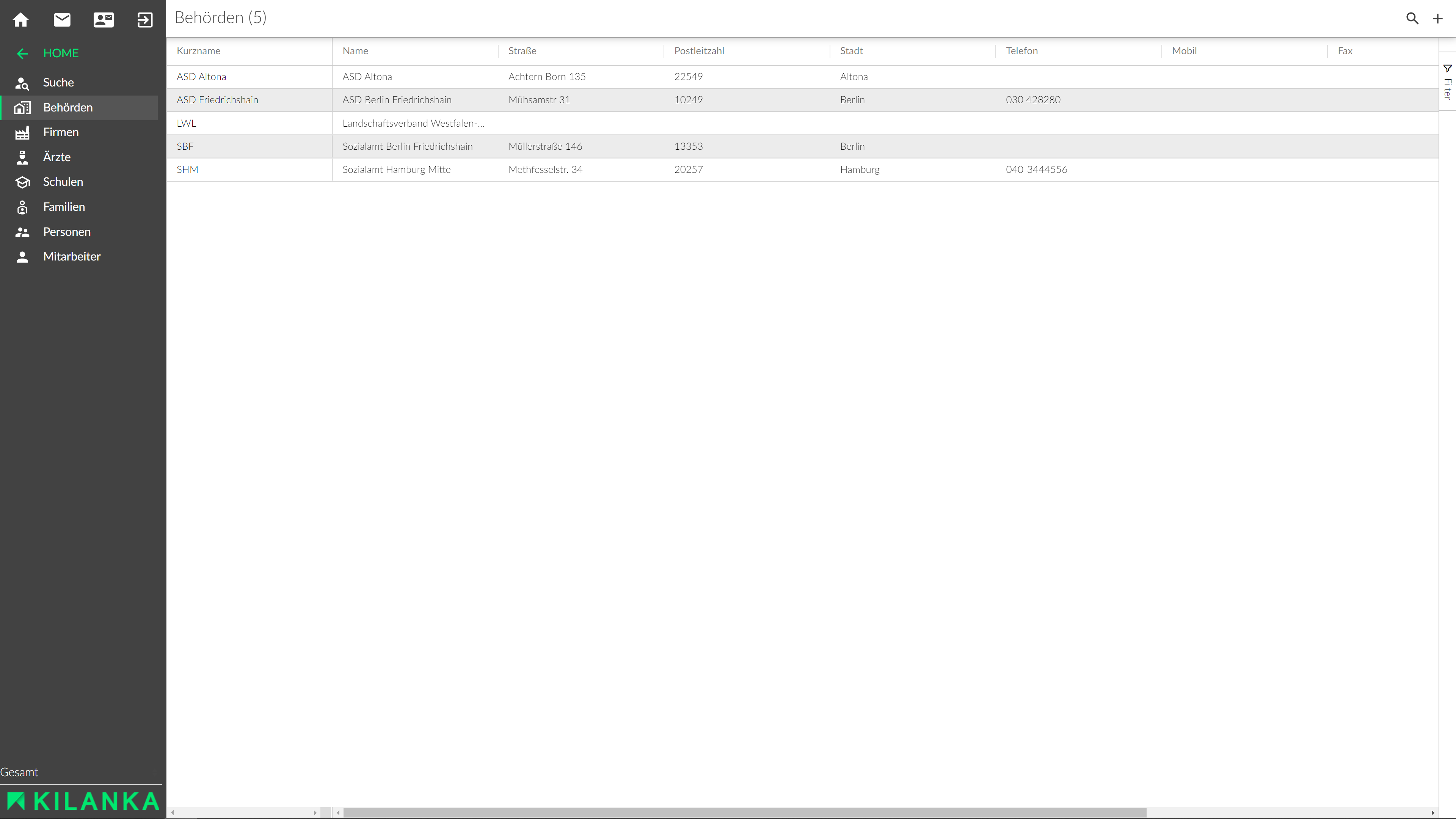 Zentrale Adressverwaltung für Behörden, Ärzte, Firmen, Familien, Mitarbeiter und Personen.