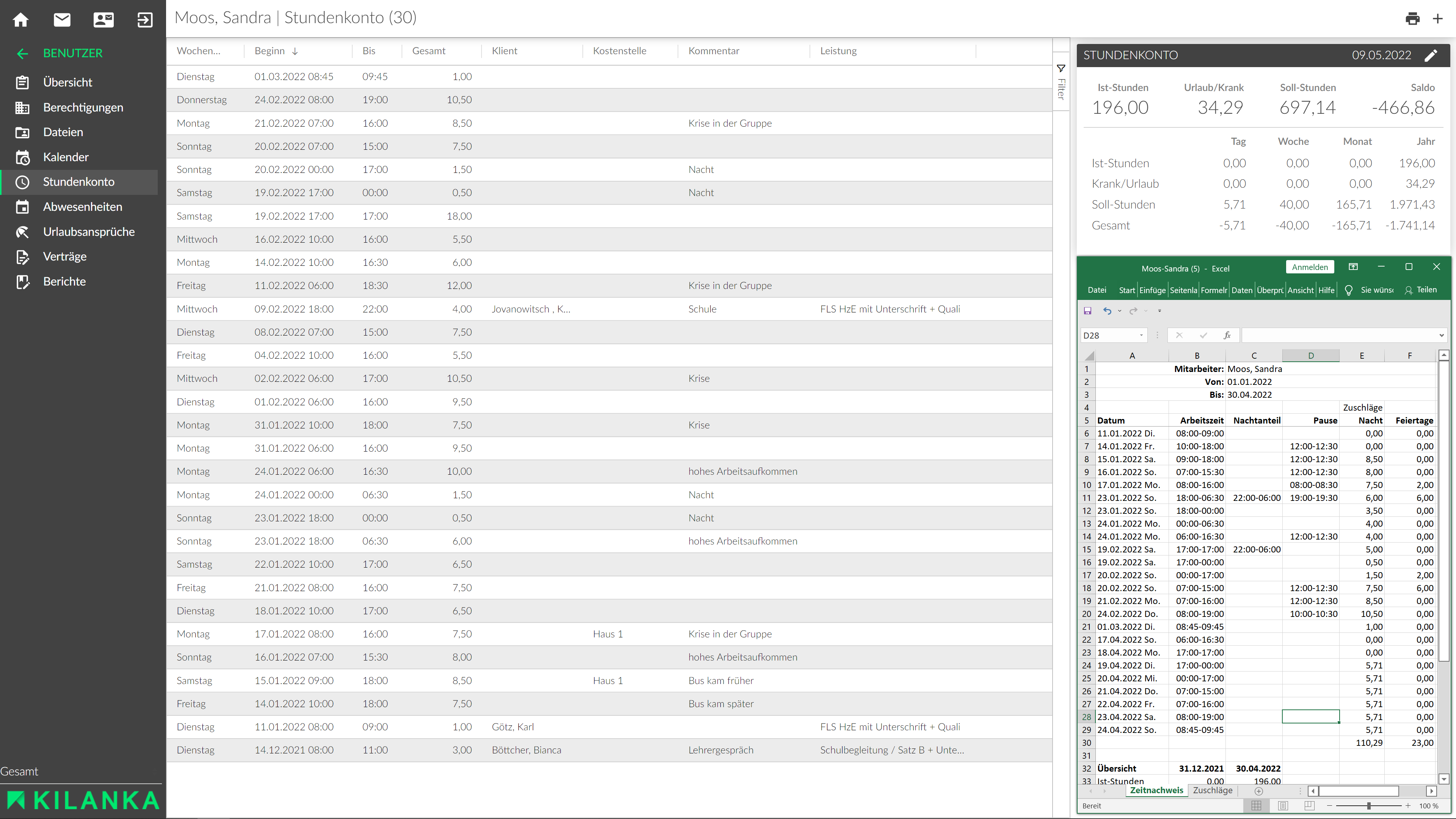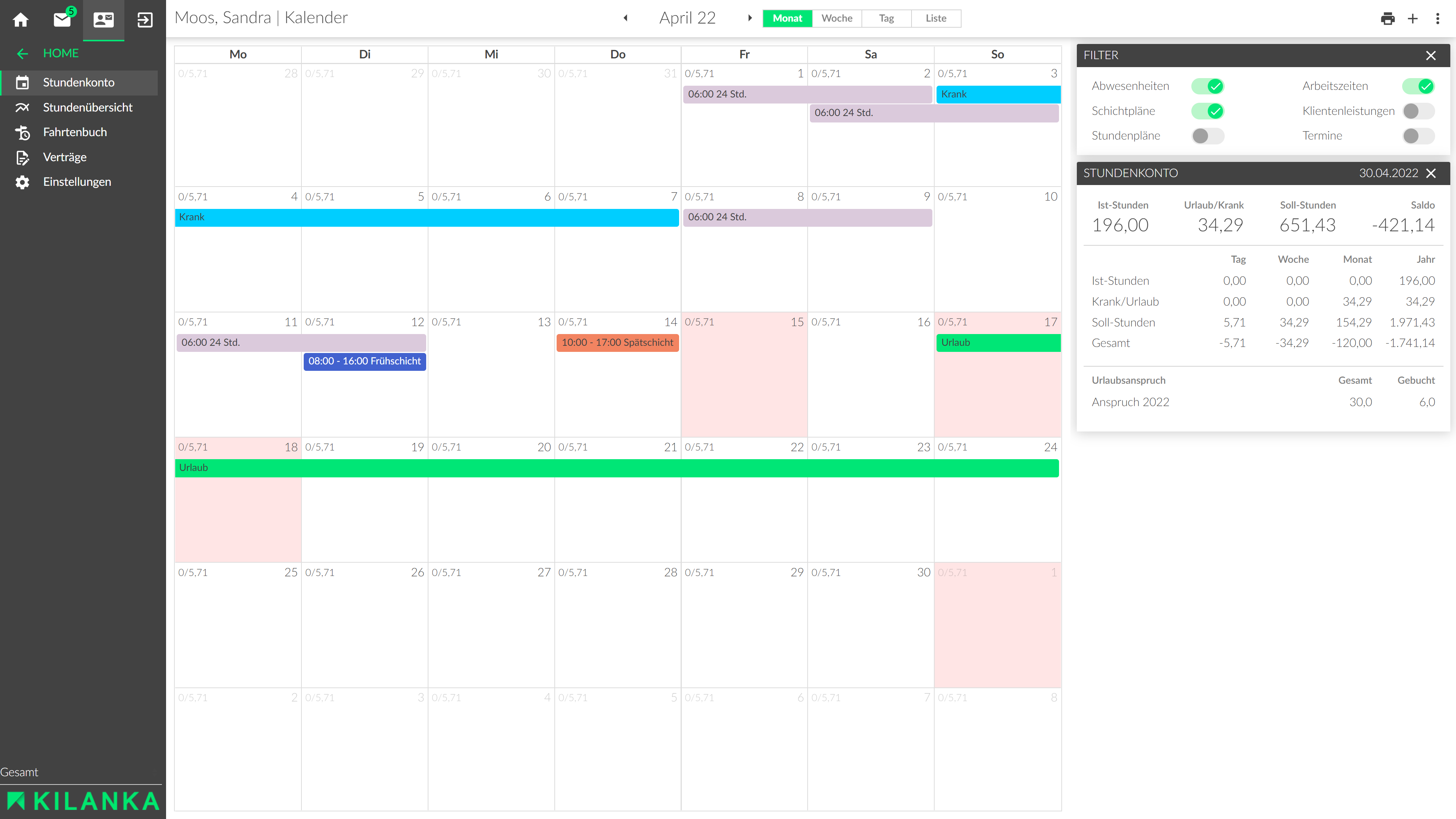 Hinterlegen Sie Arbeitsverträge in Kilanka und führen Sie Arbeitszeitkonten Ihrer Mitarbeiter.