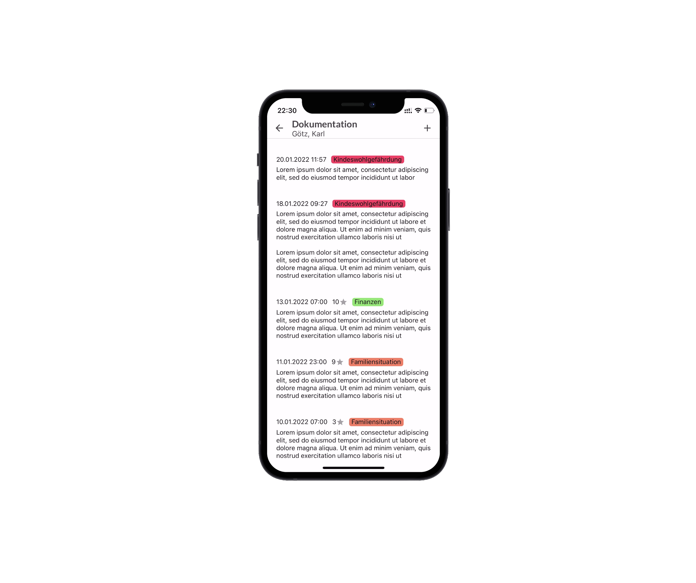 Dies erleichtert, insbesondere in Kombination mit unserer blitzschnellen Volltextsuche, ein konzentriertes Arbeiten an der Dokumentation von prozesshaften Verläufen zielorientierter Hilfemethoden.