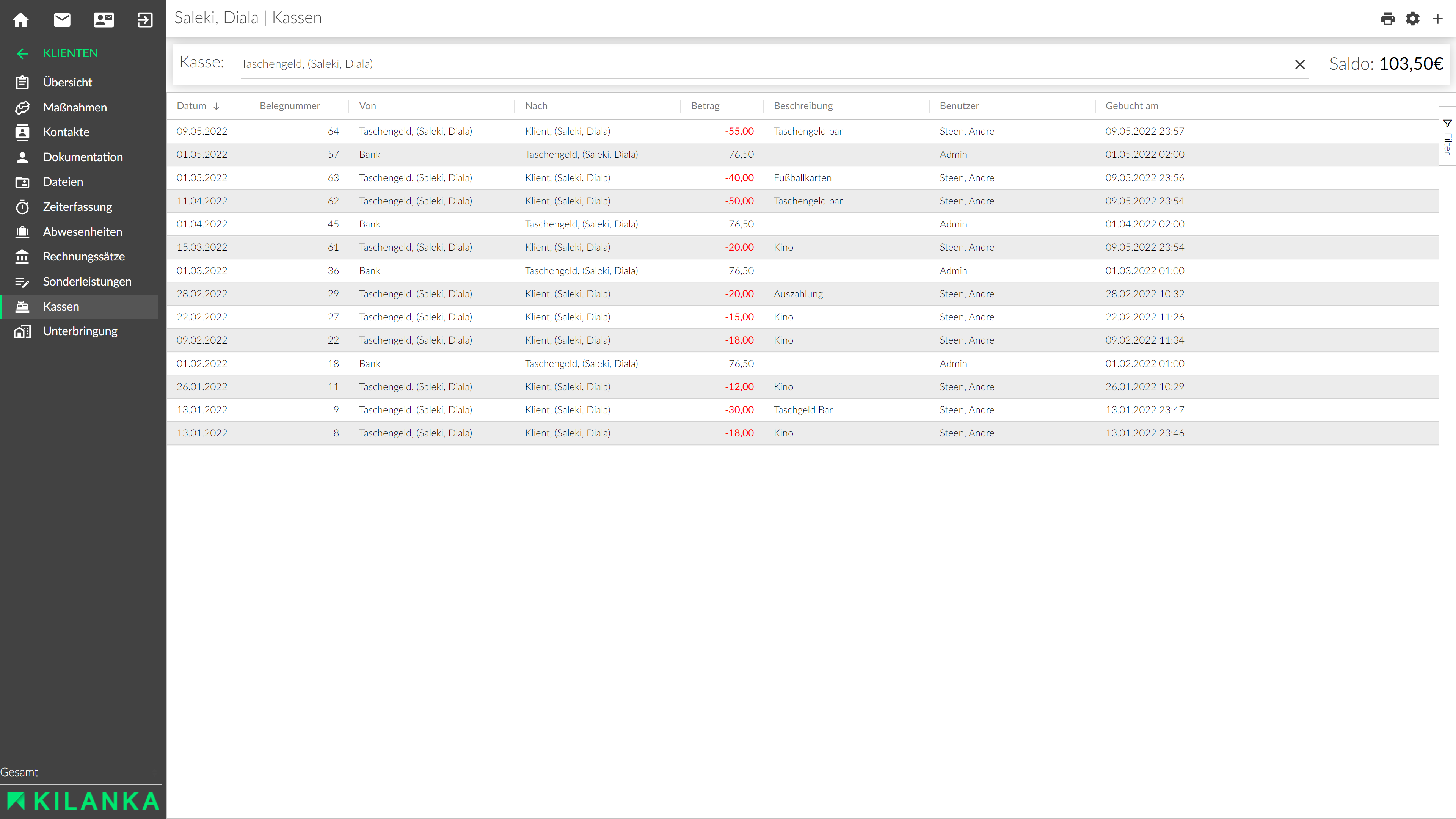 - Zentrale, konfigurierbare Kassenbücher für z. B. Taschengeld oder Bekleidungsgeld