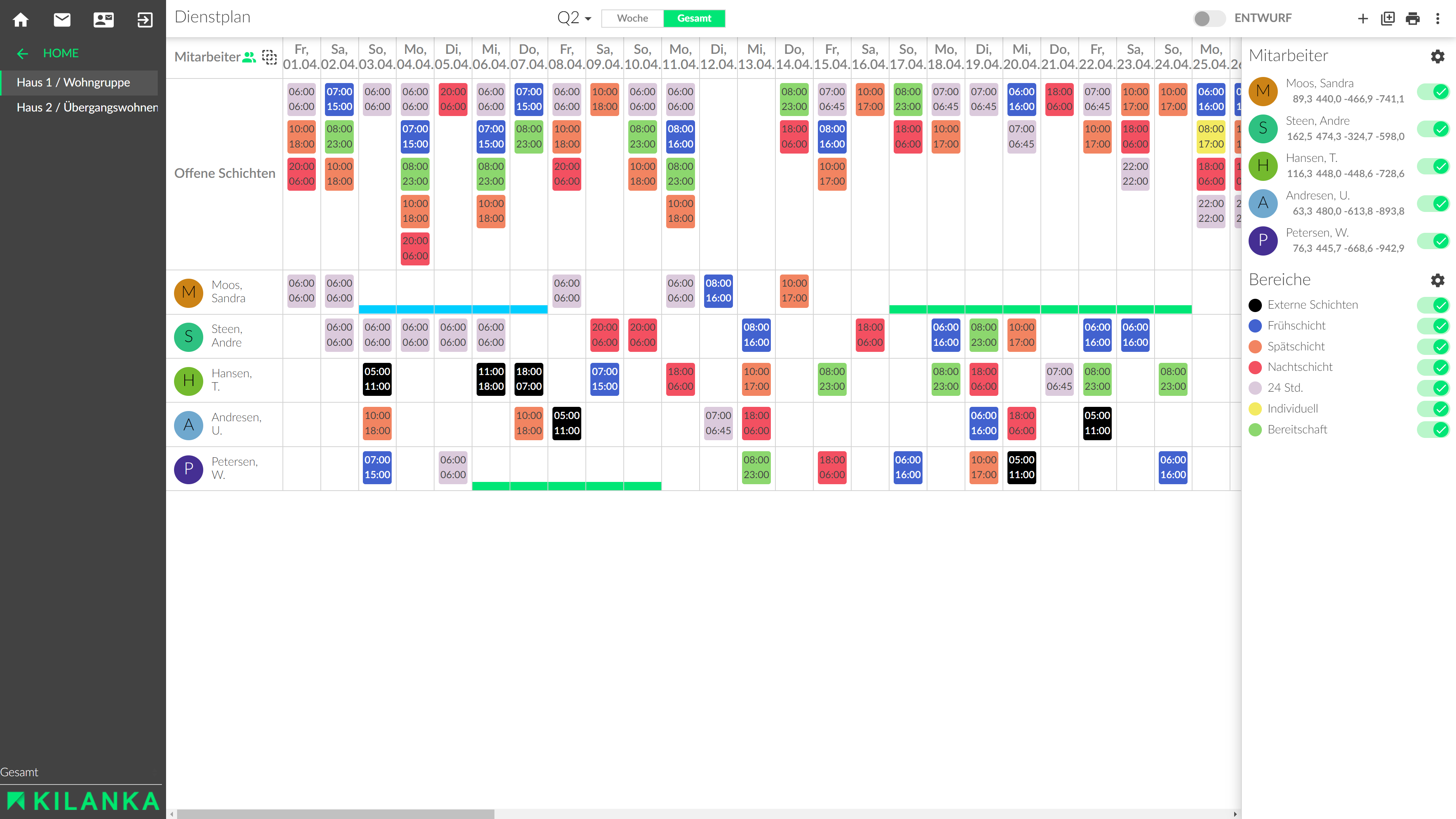 - Planung von Schichten und Belegungen in beliebig vielen Dienstplänen