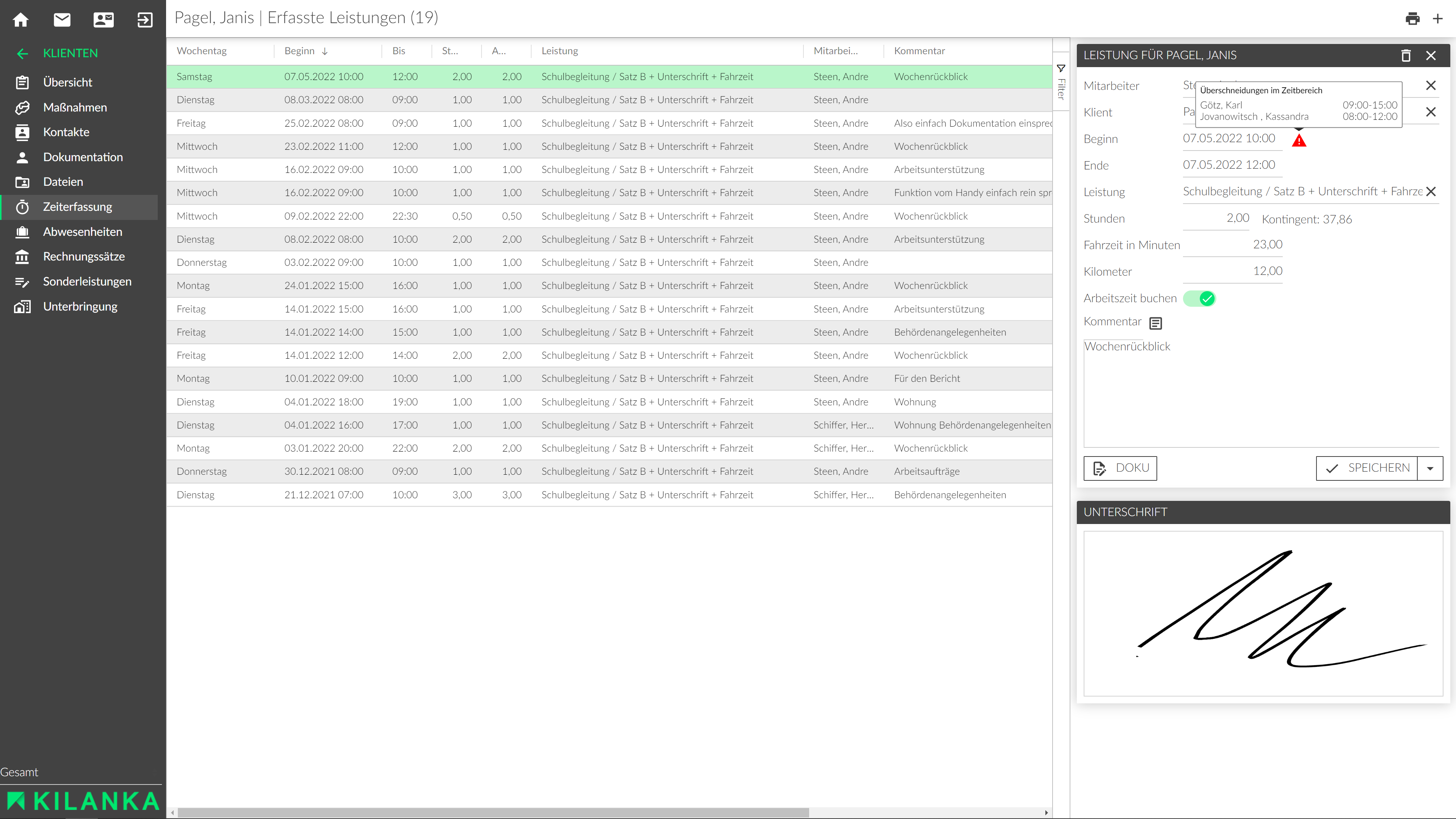 Für die ambulante Hilfe verfügt die Kilanka Software über ein Fahrtenbuch.