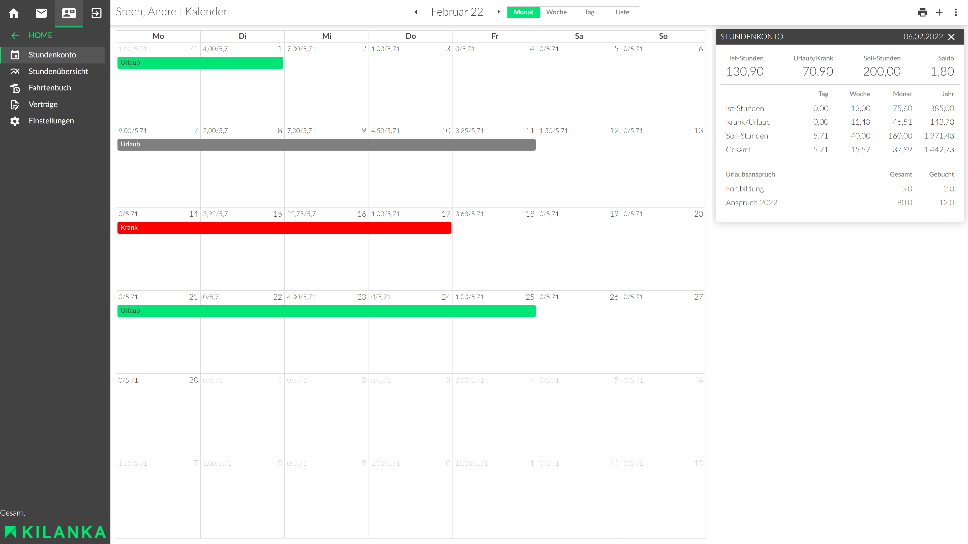 Es sind beliebige Urlaubskontingente möglich, z. B. Jahresurlaub und Fortbildung. Neue Abwesenheiten können bequem per Maus im persönlichen Bereich eingetragen werden.
